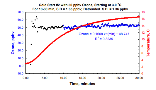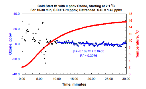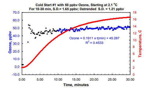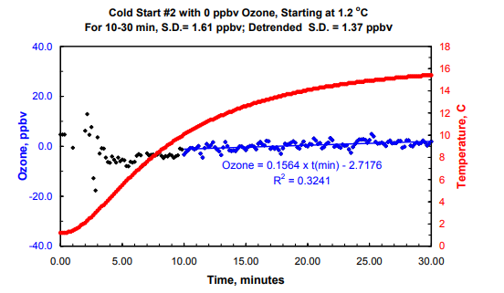 takes for ozone measurements to stabilize following a cold start at near freezing