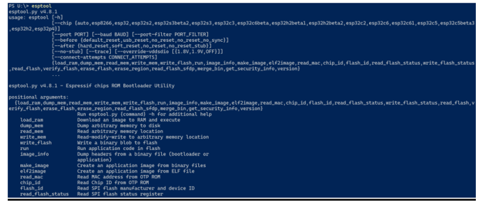 esptool --chip esp32 --port "COM66" --baud 460800 write_flash -u --