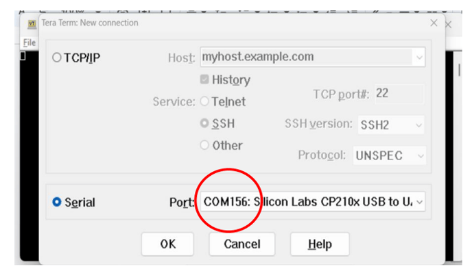 5) Locate the Serial section of the menu and find the COM port. For example, this