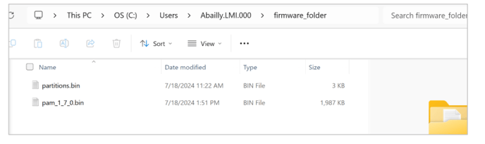 example, on this computer the file is located at “C:\Users\Abailly.LMI.000\firmware_folder”.