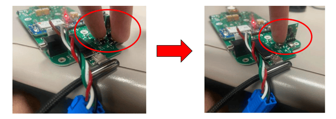 12) Turn on the PAM device by pressing down the button (shown in the next picture).