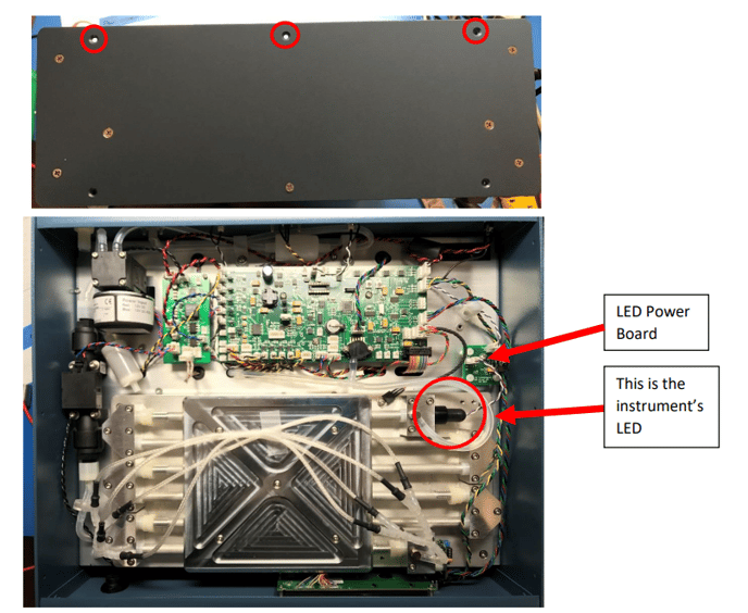 3.) Remove the instrument’s LED. First, unplug the wire from the LED power board
