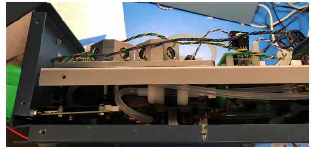 The top of your instrument with the cover removed should look similar to this.