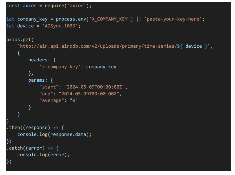 Once you have an API key, add a new header to your HTTP request with the key x-company-key, with the value set to the API key. See the code examples below for how