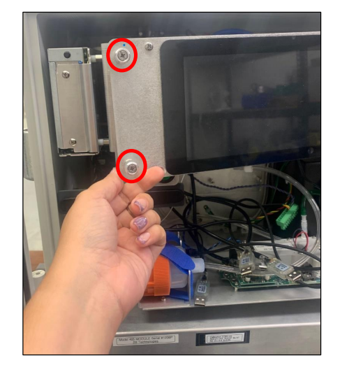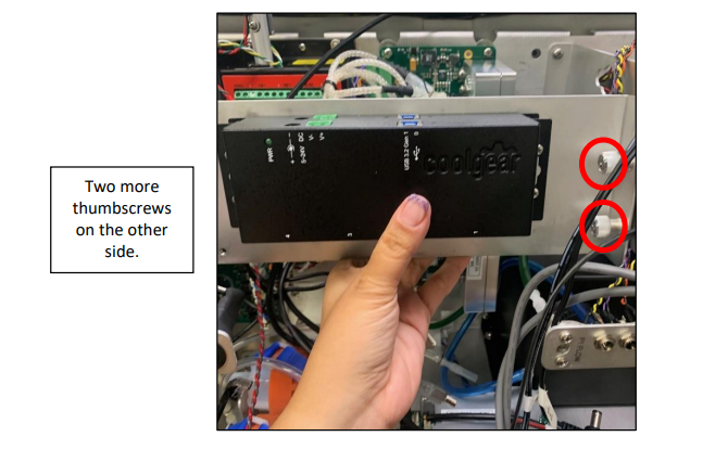 5. Remove the USB hubs shelf by unscrewing all four thumbscrews (highlighted