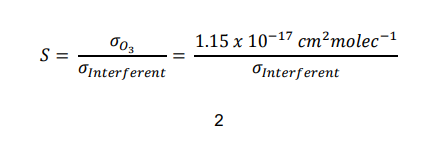Here, S is the relative response of ozone to the potential interferent. Thus, the value 1/S is the