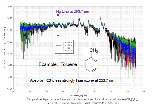 ambient air have significant absorbance at 254 nm, and those that do tend to have very low