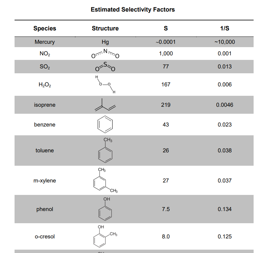 vapor will be falsely measured as about 10,000 ppb (10 ppm) of ozone. For mercury there is no