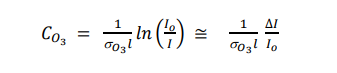 to the Beer-Lambert Law, in the limit of small absorbances the ozone concentration is proportional to the difference