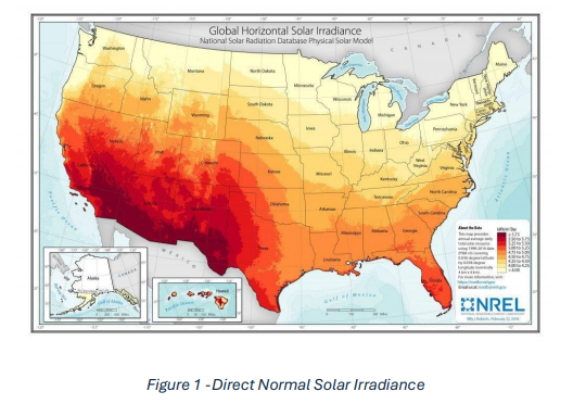 Renewable Energy Lab (NREL) displays Horizontal Solar Irradiance for the US which is the key