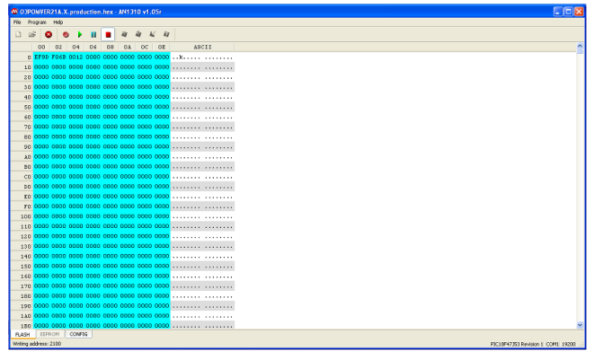 9. Click the open button in the Bootloader application and select the firmware (O3106XVERXX.hex) file that was provided by 2B Technologies.