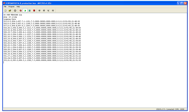 Bootloader application to reset and start the firmware. You will see data come in through the serial port to the screen.